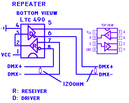 Per kanaal wordt 1 byte verstuurd, 8 bits. . Iedere byte wordt ingesloten door 1 bit laag en 2 bits hoog. Dit is zeer belangerijk voor het functioneren van de ontvangsthardware.