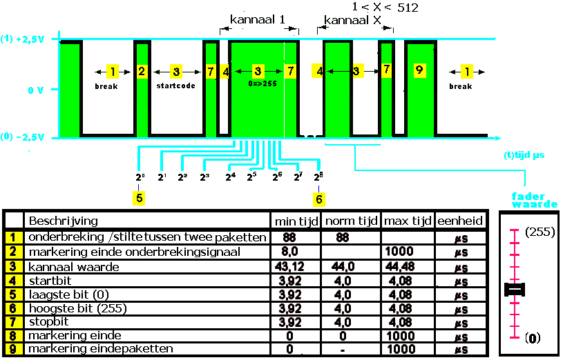 Een DMX cyclus is als volgt opgebouwd:zie fig.