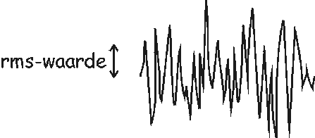 In het algemeen is het geluidsignaal echter geen regelmatige sinus maar een grillige functie. Het signaal heeft dan dus niet een constante amplitude. Daarom gebruiken we de ‘rms-waarde’, een soort gemiddelde amplitude. De ‘rms-waarde’ van een signaal bereken je door eerst alle geluiddrukken van het signaal te kwadrateren, vervolgens te middelen, en tenslotte de wortel te nemen. De afkorting ‘rms’ staat voor ‘root-mean-square’, wat Engels is voor ‘wortel-gemiddelde-kwadraat’.