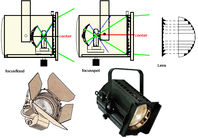 Bij sommige kunt u de lens/lamp verschuiven om zo de verlichting te gebruiken als PC en als FRESNEL lamp.